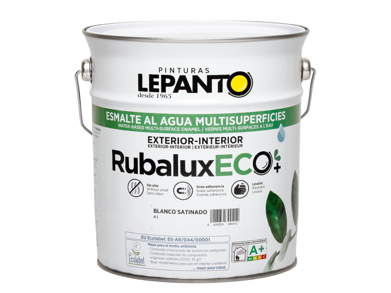 Esmalte al agua multisuperficie ecológico semi-brillante.